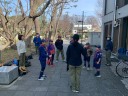途中入団説明会に来場した体験者も加わり、一緒に活動する。